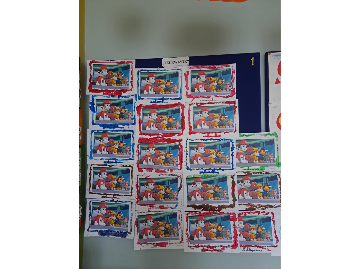 Na zakończenie stworzyły własne „telewizory” – maczając palce w farbie i podążając po śladzie. Oczywiście nie mogło zabraknąć ich ulubionej bajki – Psi Patrol zrobił największe wrażenie!
