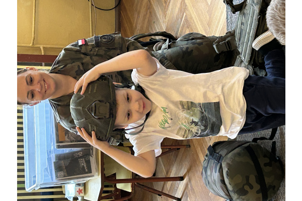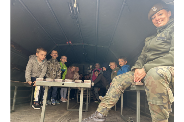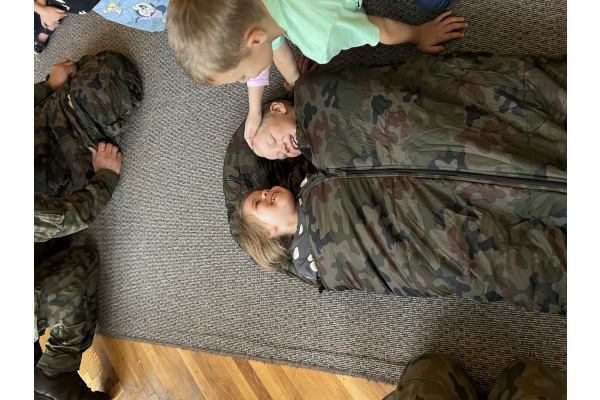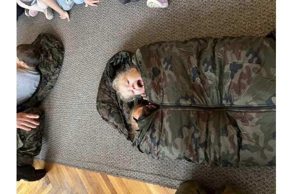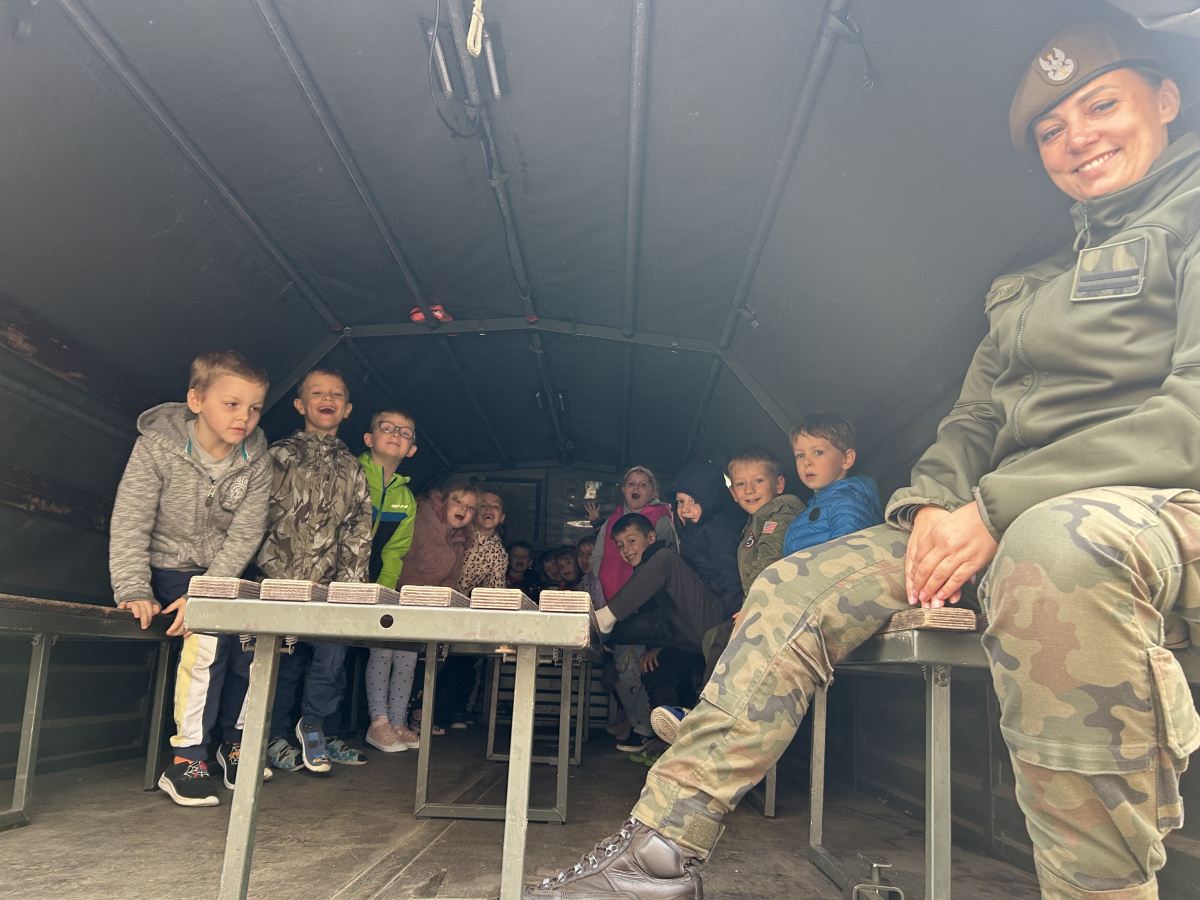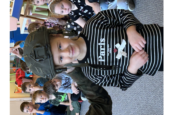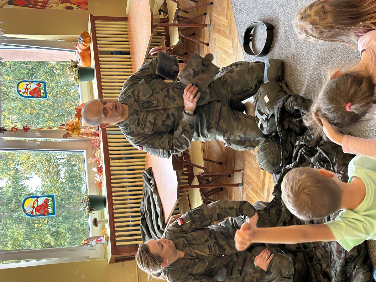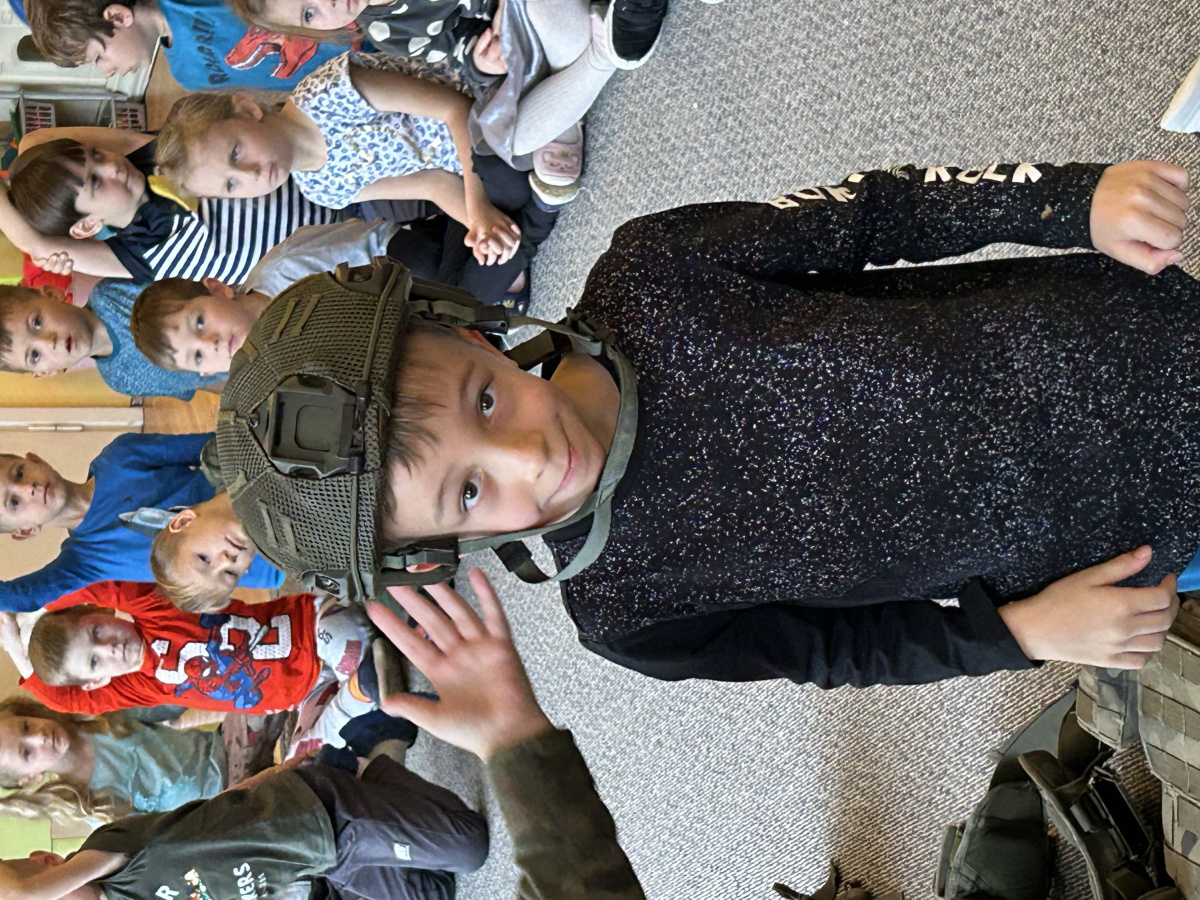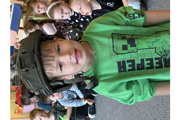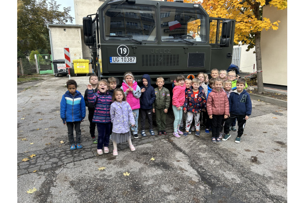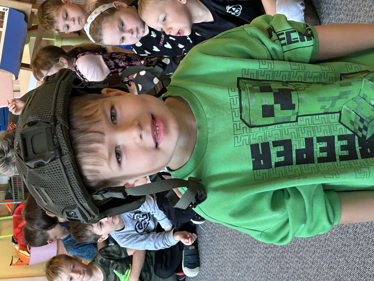 Dziś w naszym przedszkolu gościli żołnierze z 8 Kujawsko-Pomorskiej Brygady Wojsk Terytorialnych. Podczas spotkania z nimi dzieci z grupy IV i VI dowiedziały się na czym polega praca żołnierza, jak wygląda jego mundur, oraz jakie dodatkowe wyposażenie posiada żołnierz. Przedszkolaki zobaczyły także samochód wojskowy.