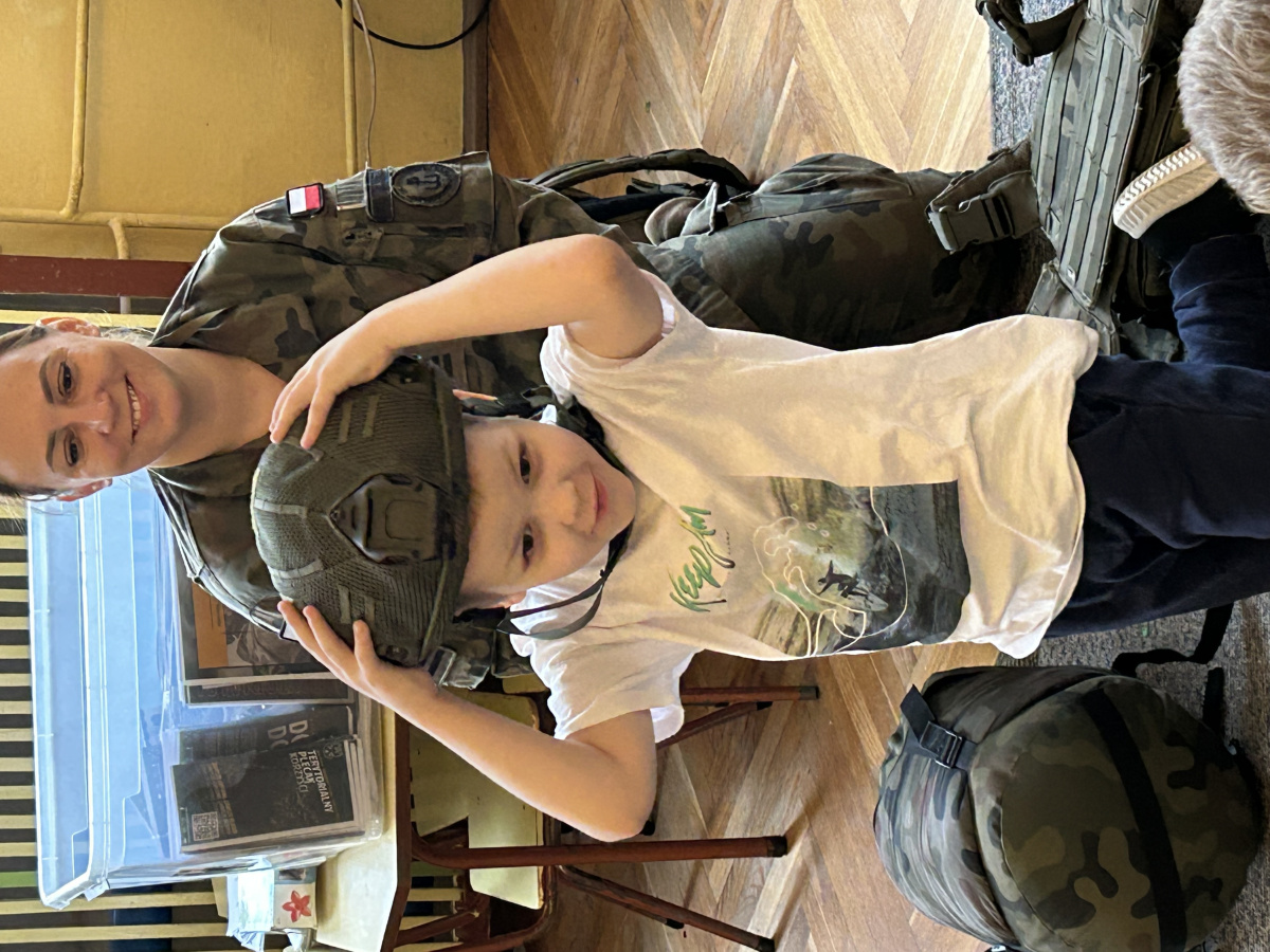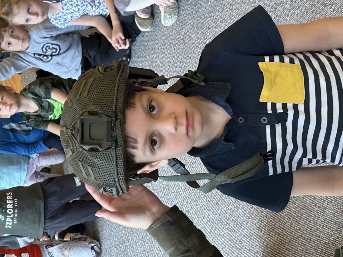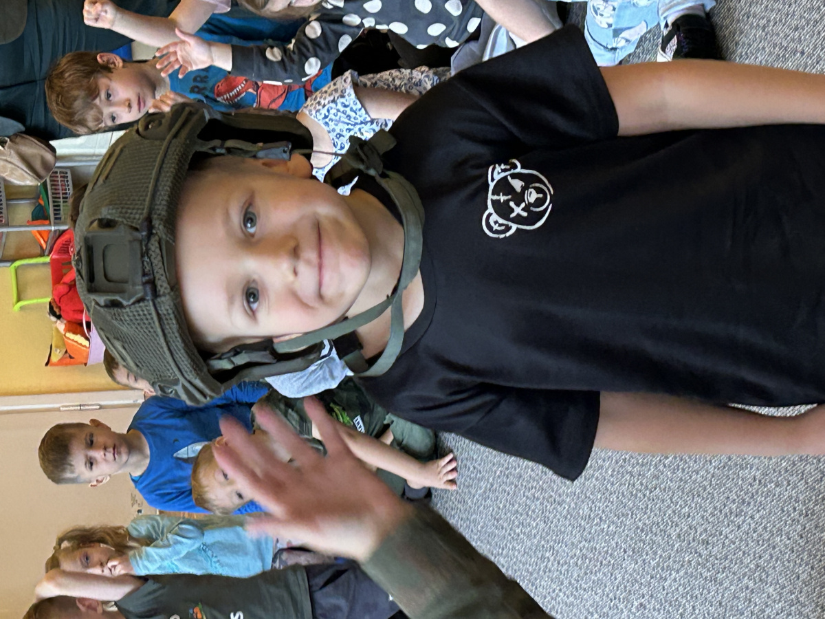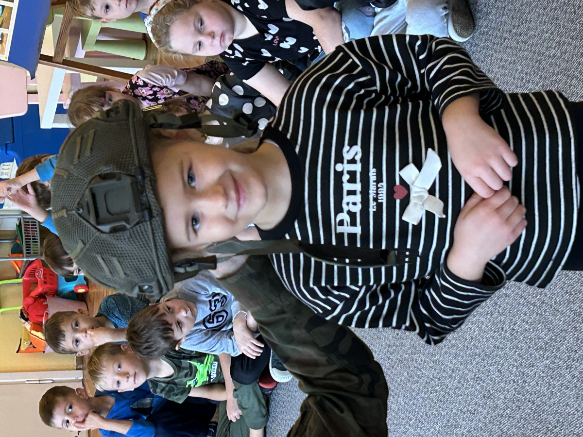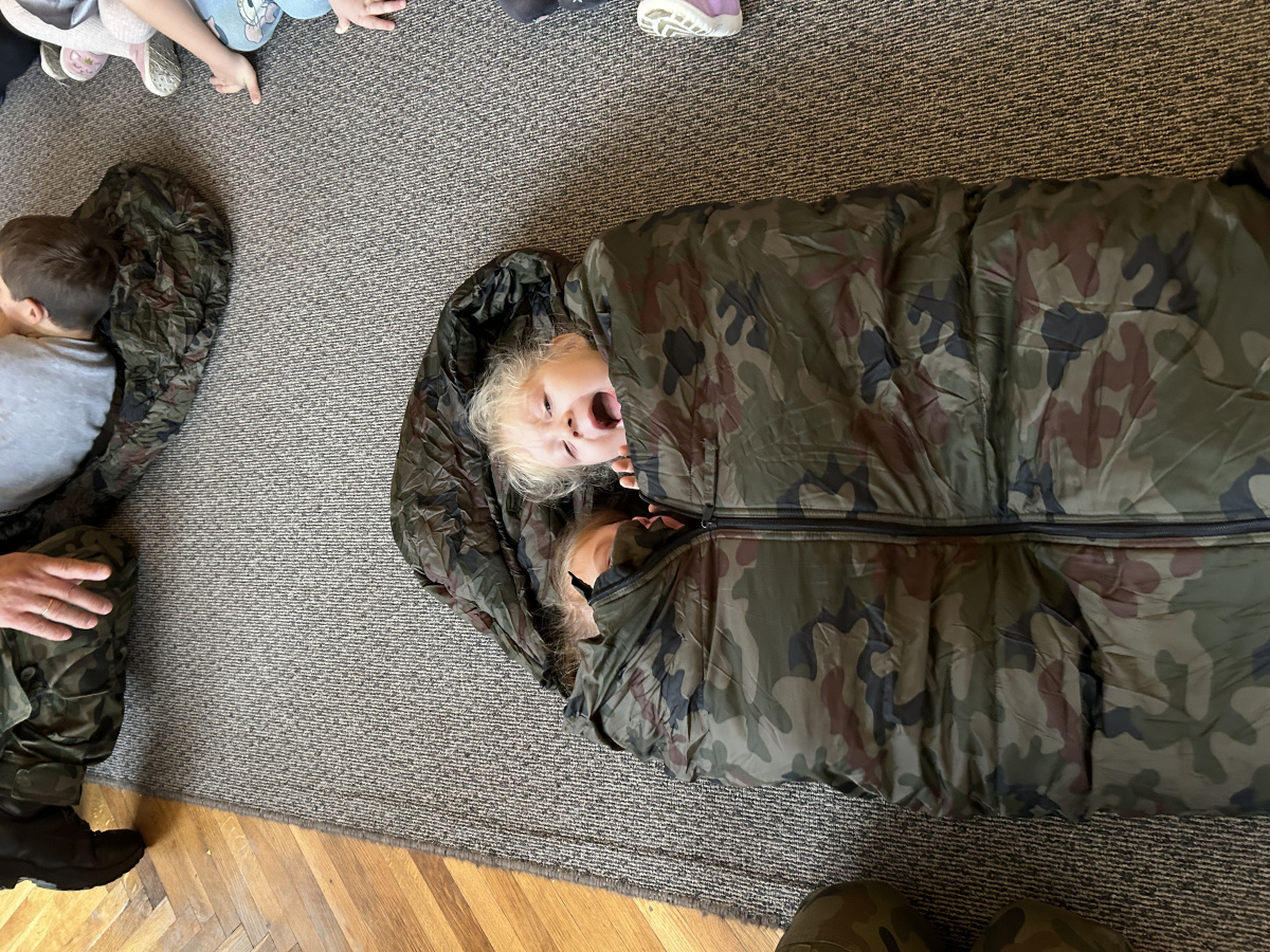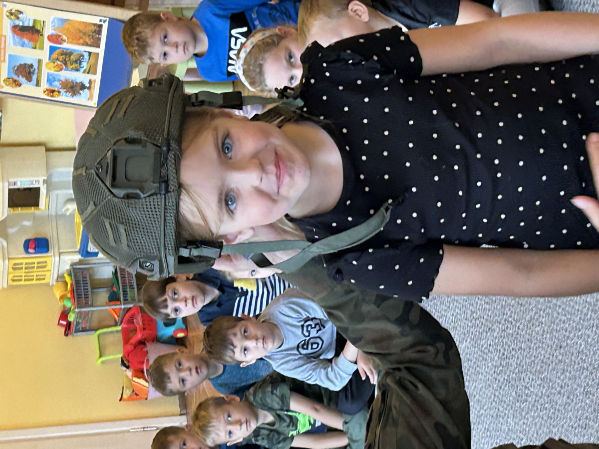 Dziś w naszym przedszkolu gościli żołnierze z 8 Kujawsko-Pomorskiej Brygady Wojsk Terytorialnych. Podczas spotkania z nimi dzieci z grupy IV i VI dowiedziały się na czym polega praca żołnierza, jak wygląda jego mundur, oraz jakie dodatkowe wyposażenie posiada żołnierz. Przedszkolaki zobaczyły także samochód wojskowy.