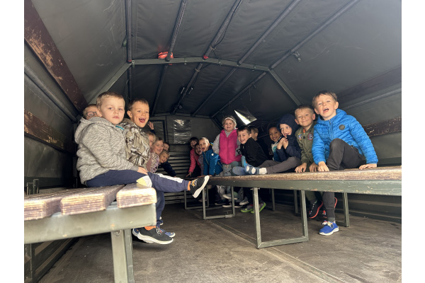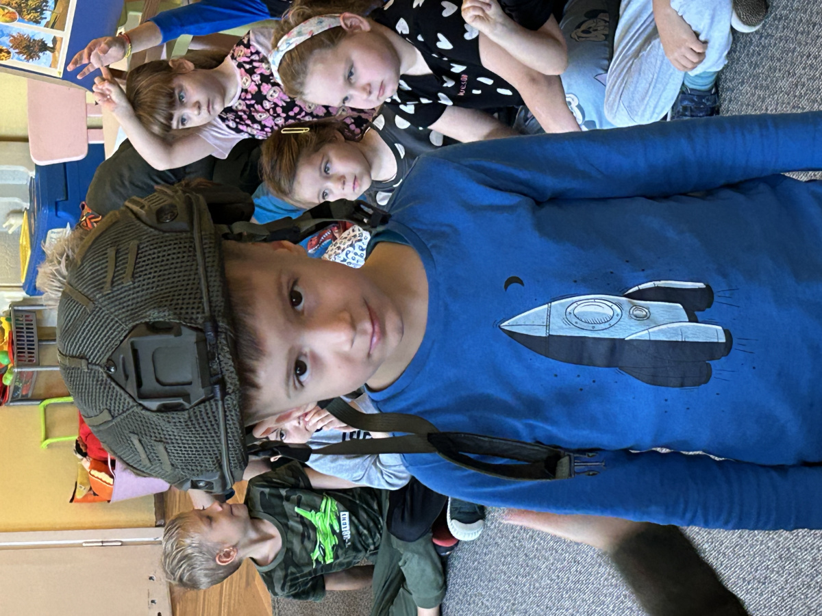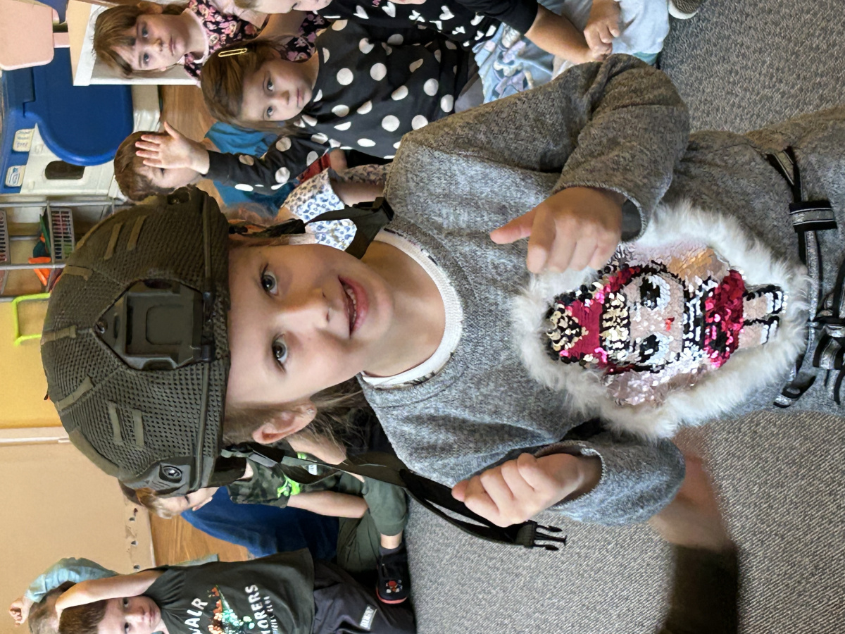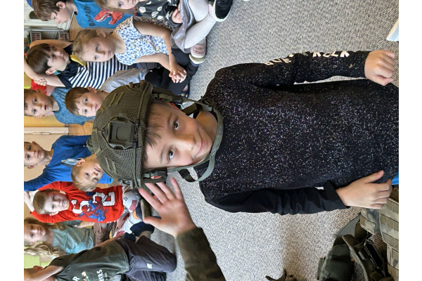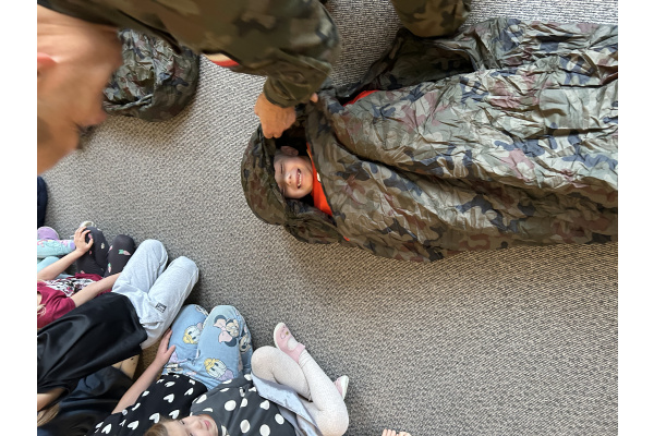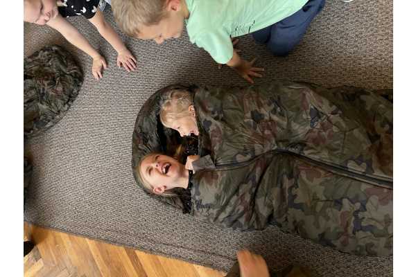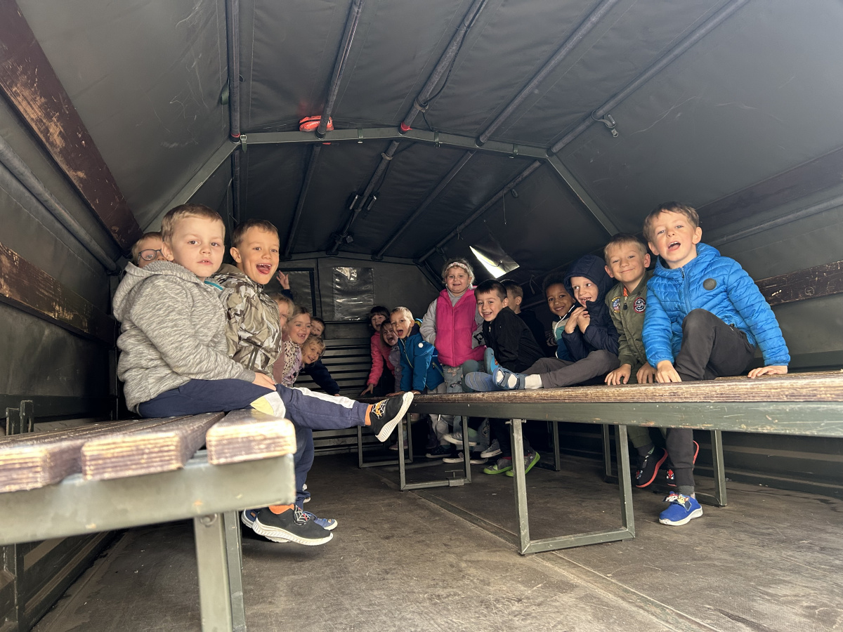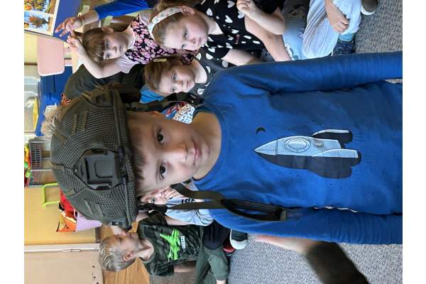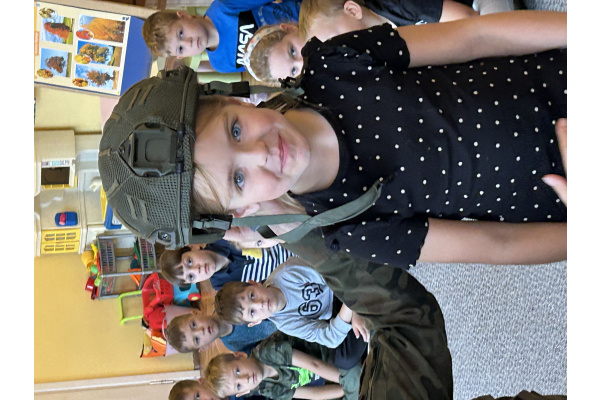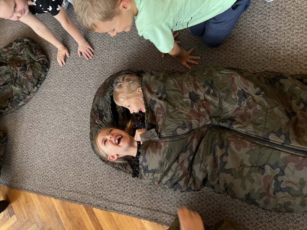 Dziś w naszym przedszkolu gościli żołnierze z 8 Kujawsko-Pomorskiej Brygady Wojsk Terytorialnych. Podczas spotkania z nimi dzieci z grupy IV i VI dowiedziały się na czym polega praca żołnierza, jak wygląda jego mundur, oraz jakie dodatkowe wyposażenie posiada żołnierz. Przedszkolaki zobaczyły także samochód wojskowy.
