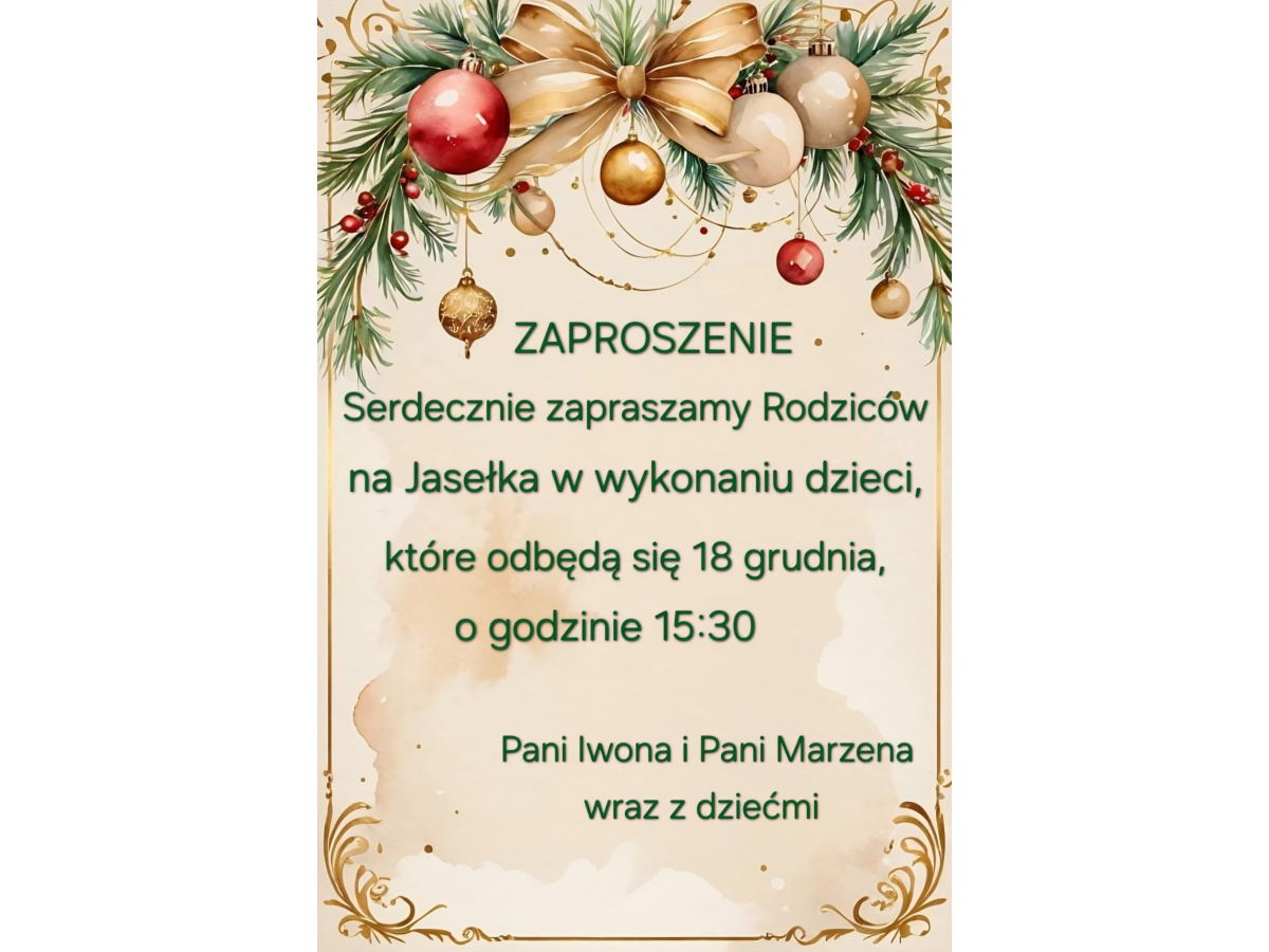 ZAPROSZENIE NA JASEŁKA GRUPA IV