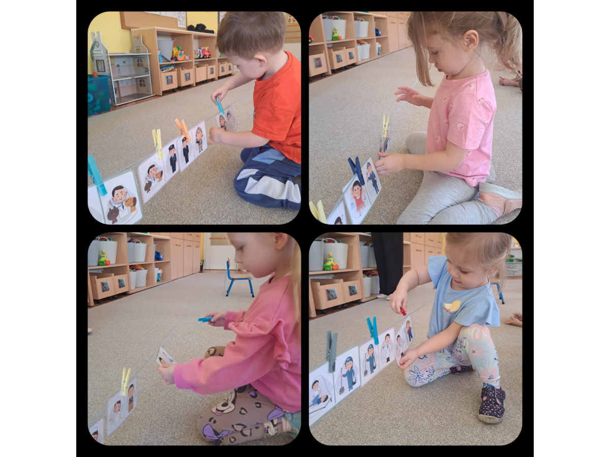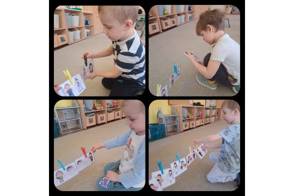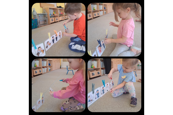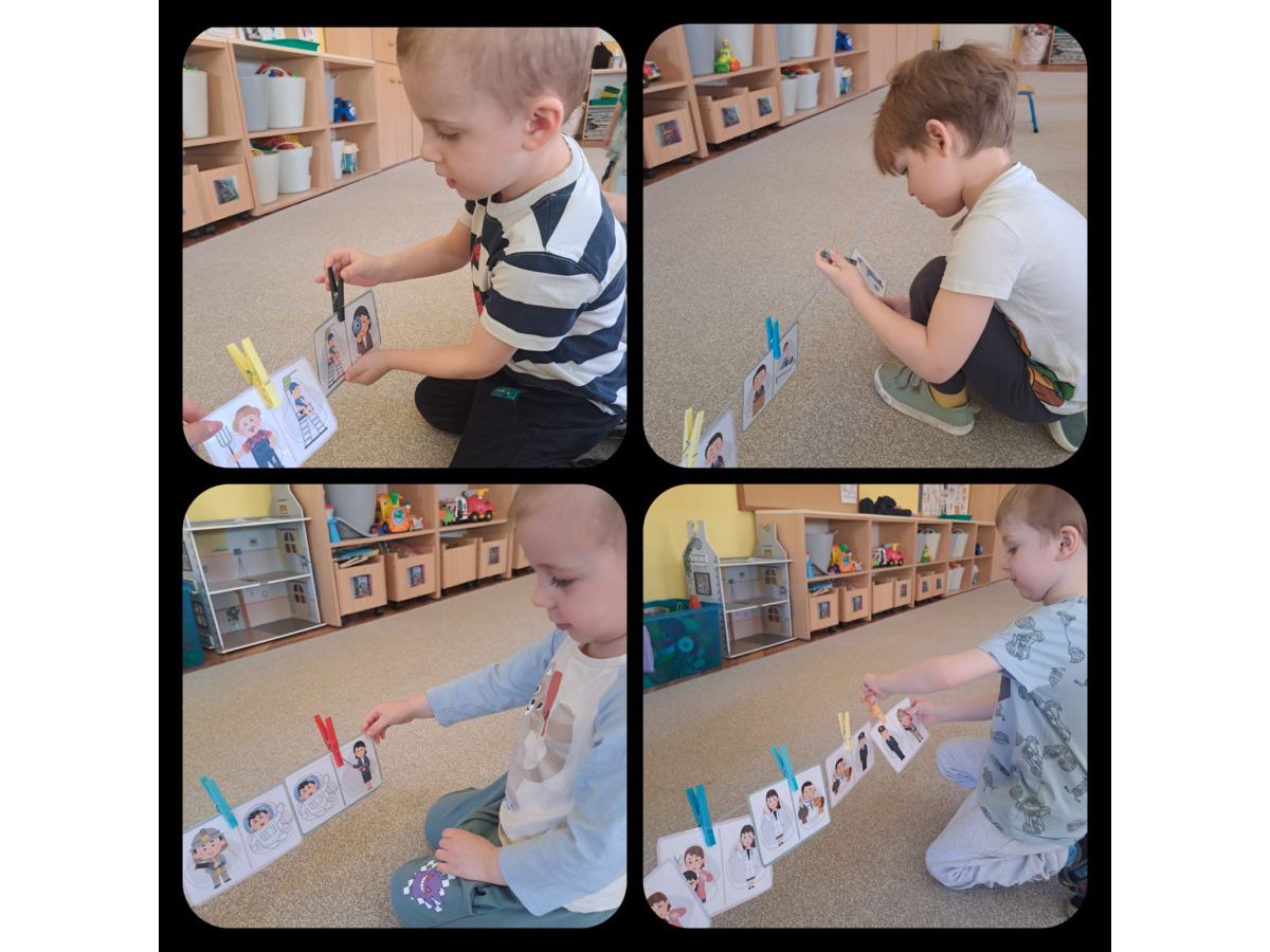 Grupa I w ramach rozmów na temat różnych zwodów- pracowała metodą Montessori, wykonując ćwiczenia rozwijające chwyt pęsetkowy, który wspomaga rozwój małej motoryki i przygotowuje dzieci do nauki pisania.