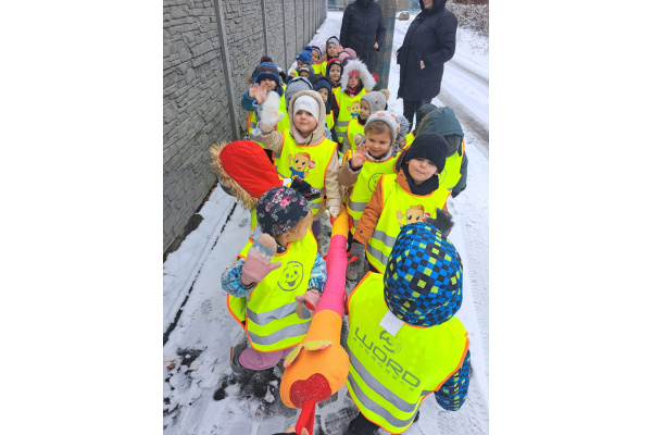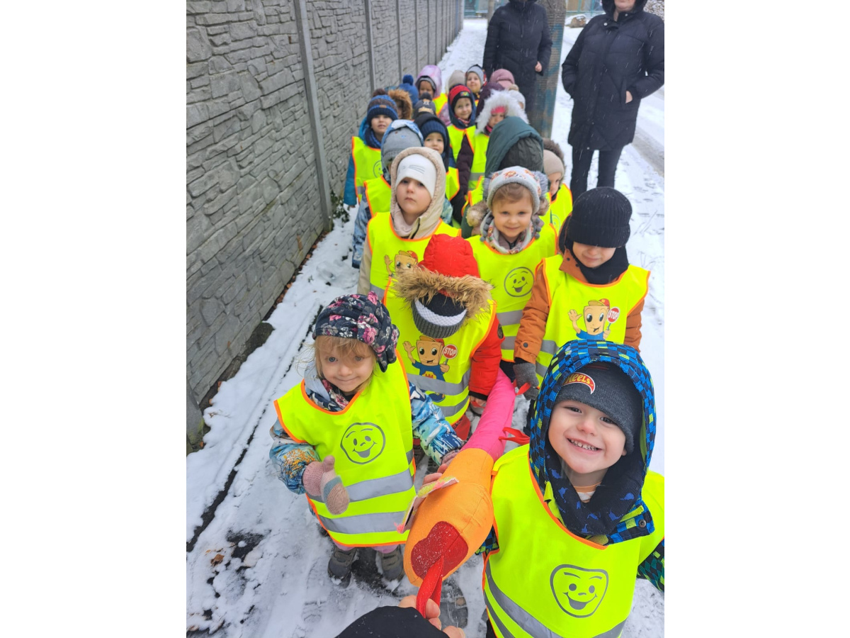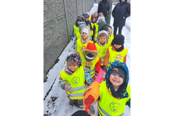 Grupa I skorzystała z zimowej aury i wybrała się na spacer. Śnieg sprawił im mnóstwo radości.